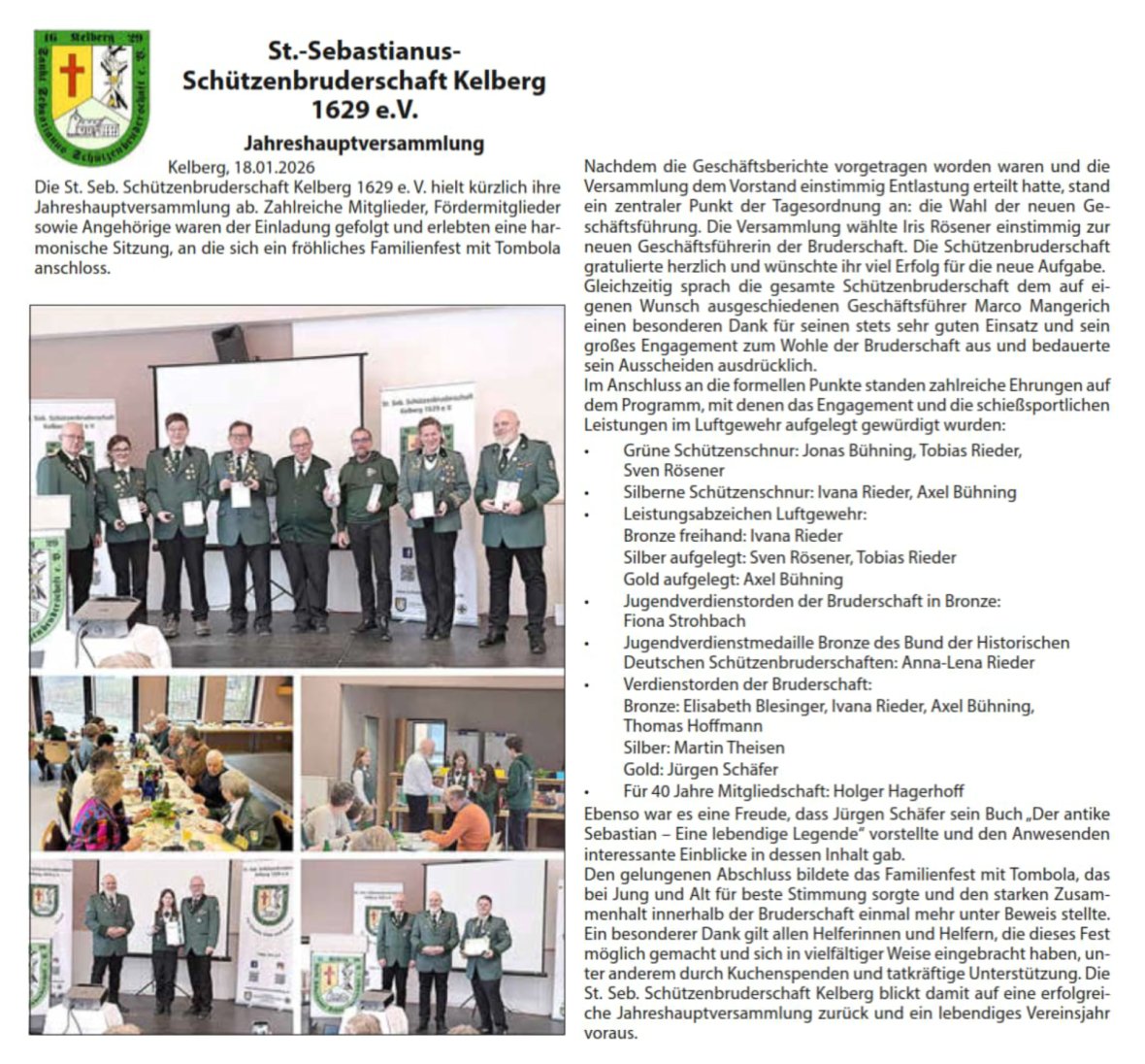 St.-Sebastianus-Schützenbruderschaft Kelberg 1629 e.V. - Jahreshauptversammlung