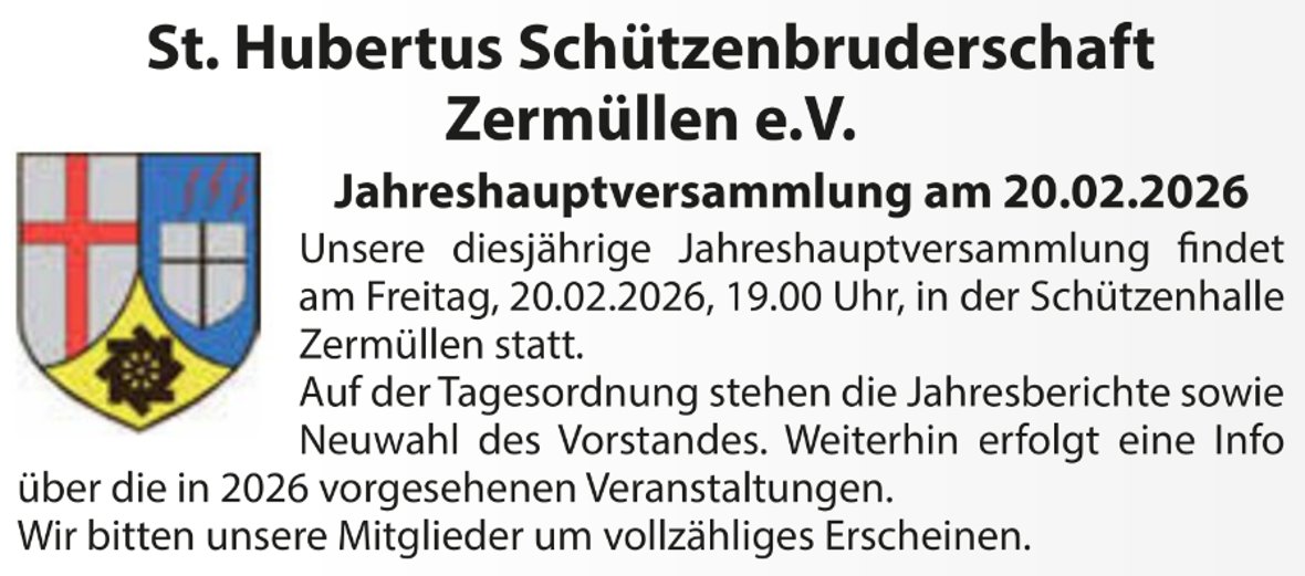 St. Hubertus Schützenbruderschaft Zermüllen e.V. - Jahreshauptversammlung
