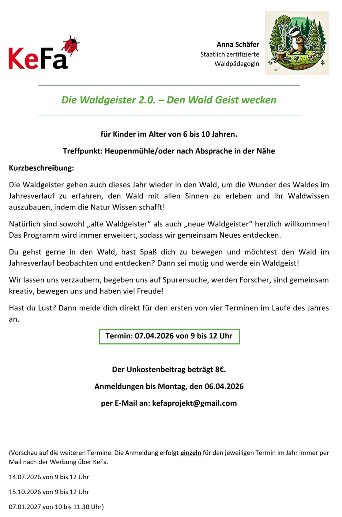 KeFa e.V. - Die Waldgeister 2.0 - Den Wald Geist wecken