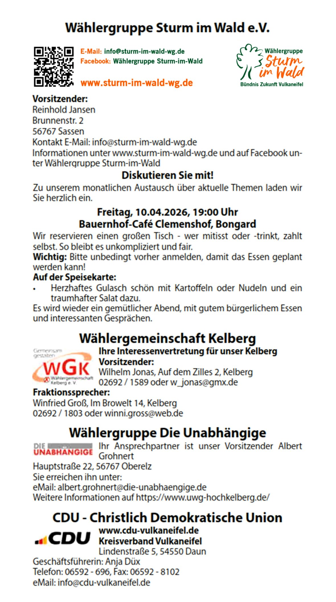 aus der Sitzung des Ortsgemeinderates Kelberg am 24.03.2026; Verpflichtung eines neuen Ratsmitgliedes; Auftragsvergabe; Zustimmung zum kostenlosen Upgraden der Ladestation Marktplatz; Mitteilungen / Verschiedenes