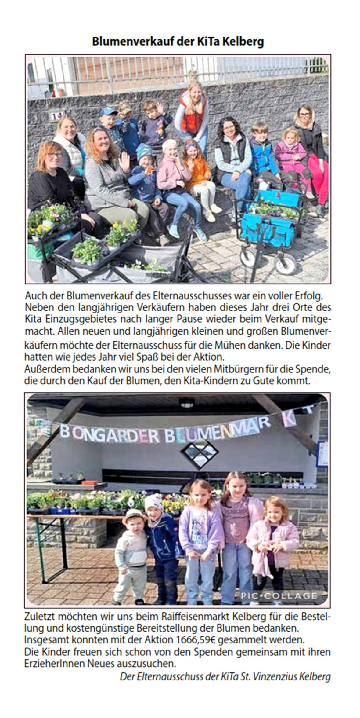 Blumenverkauf der Kindertagesstätte St. Vinzenzius Kelberg