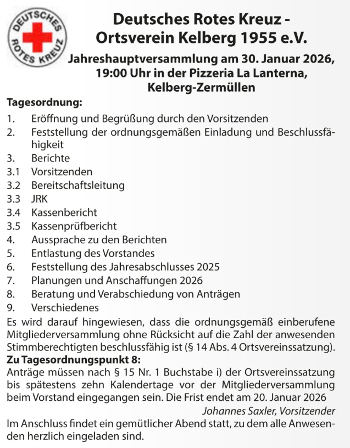 DRK Ortsverein Kelberg - Jahreshauptversammlung