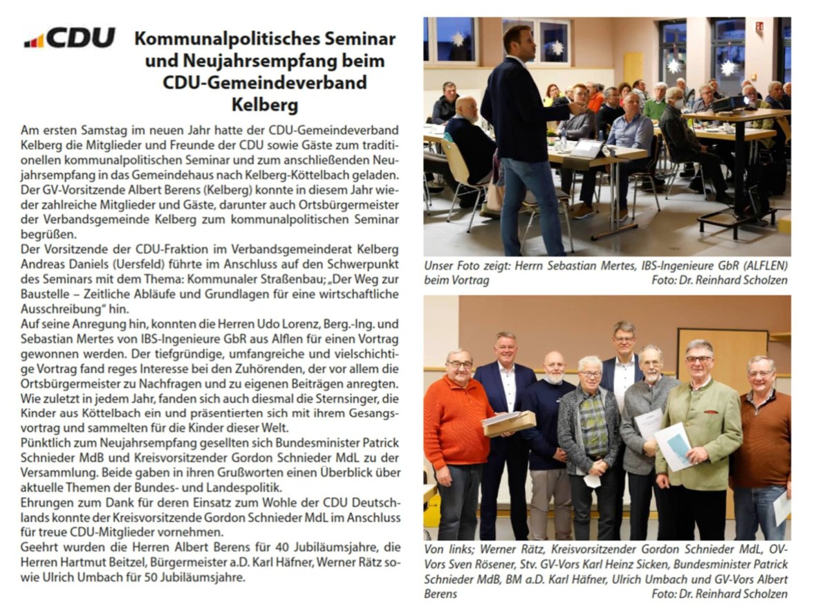 CDU - Gemeindeverband Kelberg - Kommunalpolitisches Seminar und Neujahrsempfang